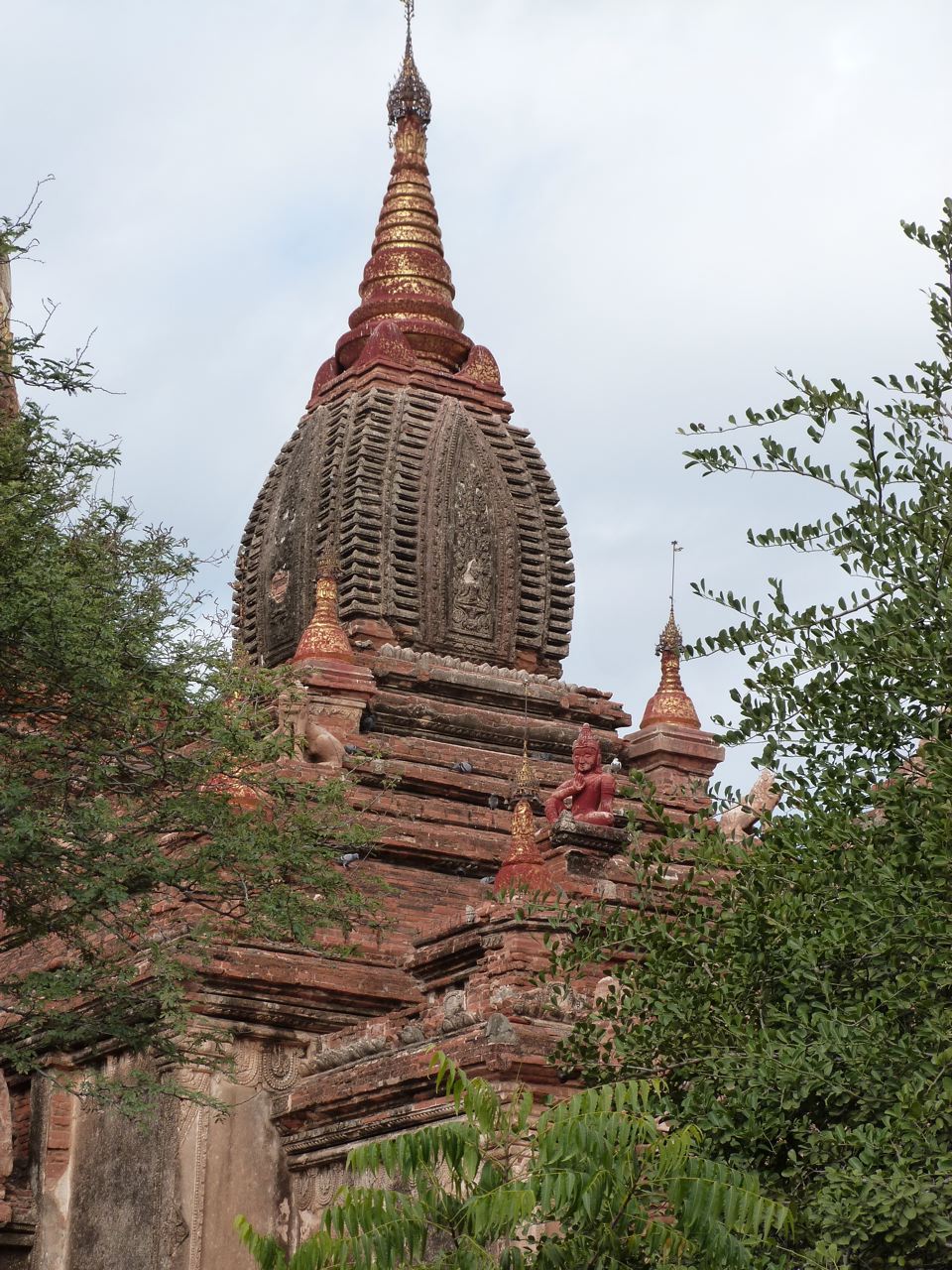 Difficile à dire pourquoi la pagode Dhammayazika nous a tant plu : elle n'était ni tout à fait restaurée, ni tout à fait décatie, mais les feuilles d'or qui la recouvraient avaient en grande partie été délavées par le temps; dans sa semi-nudité elle était tout simplement belle et nous sommes tombés sous le charme.