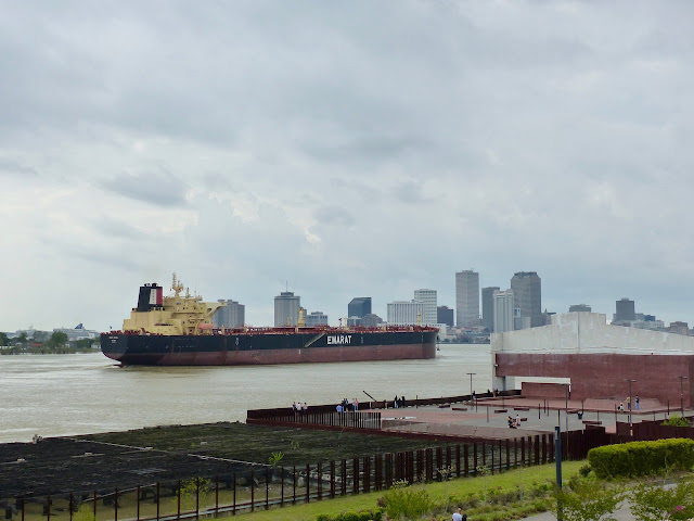- Pourtant la Nouvelle Orélans est bien située à l'embouchure du Mississippi, avec un grand port de commerce, des gratte-ciel, et des berges en voie d'aménagement. On est bien à la Nouvelle Orléans.
